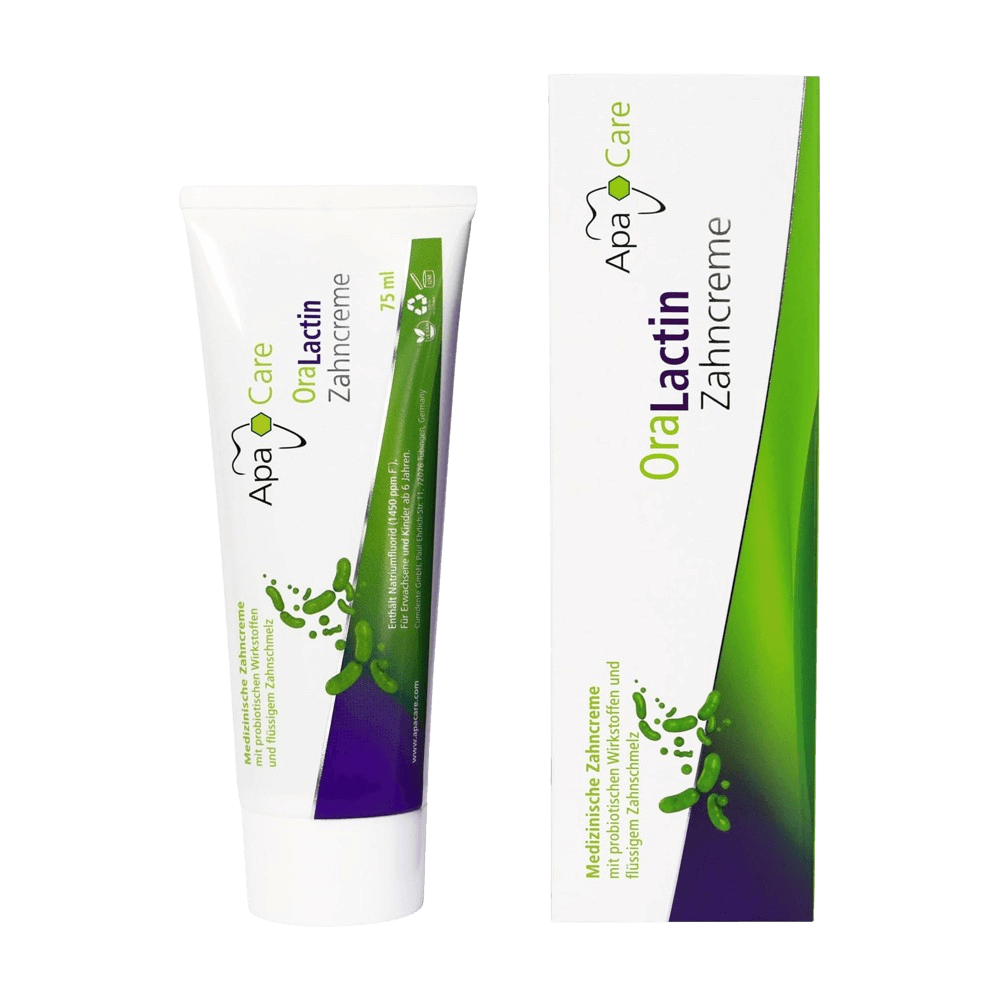 ApaCare OraLactin pre- ja postbiootiline hambapasta toetab ja säilitab tervislikku suu mikrofloorat. Igapäevaseks tervisliku suu mikrofloora stabiliseerimiseks ja taastamiseks. Hea suu mikrofloorale Pre- ja postbiootiline Hüdroküapatiitiga (remineraliseeriv) Fluoriidiga (1450ppm F) Igapäevaseks kasutamiseks