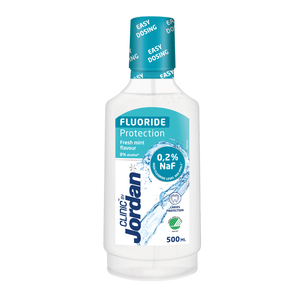 Jordan CLINIC Fluoride Protection igapäevane suuvesi 500ml on valmistatud kõrge fluorisisaldusega 0,2% NaF, et kaitsta kaariese eest. Suuvesi on mõeldud igapäevaseks kasutamiseks. Õrn koostis ilma alkoholita (ilma etanoolita). Hoiab igemed tervena Värske piparmündi maitse Ilma alkoholita Sisaldab fluoriidi (900 ppmF)
