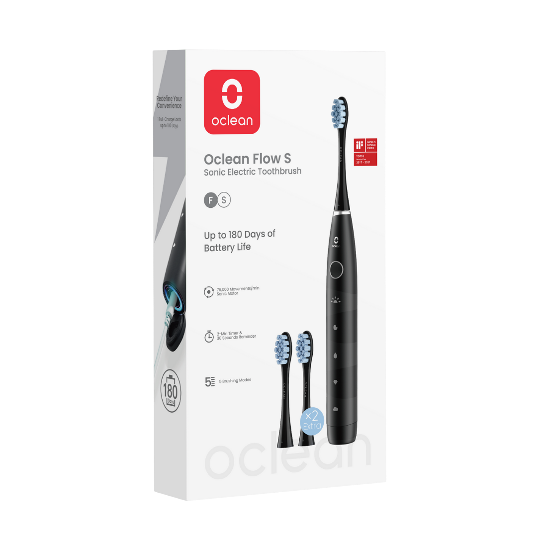 Oclean Flow S on Sonic elektriline hambahari, millel on hämmastav 180-päevane aku kasutusiga. Oclean Flow S hambaharjal on 5 režiimi, kaheminutiline nutikas taimer ja 30-sekundiline meeldetuletusfunktsioon hoolikaks ja tõhusaks harjamiseks. 1 käepide (5 režiimi) 3 otsikut Laadija (5h laadimine) Aku kuni 180 päeva