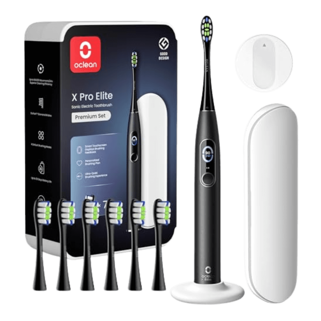 Oclean X Pro Elite on üks parematest valikutest elektrilise hambaharjana, mis juhendab Sind tehisintellekti abil igemete kaitsmiseks ja harjamisharjumuste parandamiseks. 1 käepide (4 režiimi) 7 otsikut (Professional Clean) Laadija (kaabliga) Reisivutlar Seinakinnitus Puutetundlik ekraan Väga vaikne (45dB) Surveanduriga (visuaalne) Aku kuni 35 päeva
