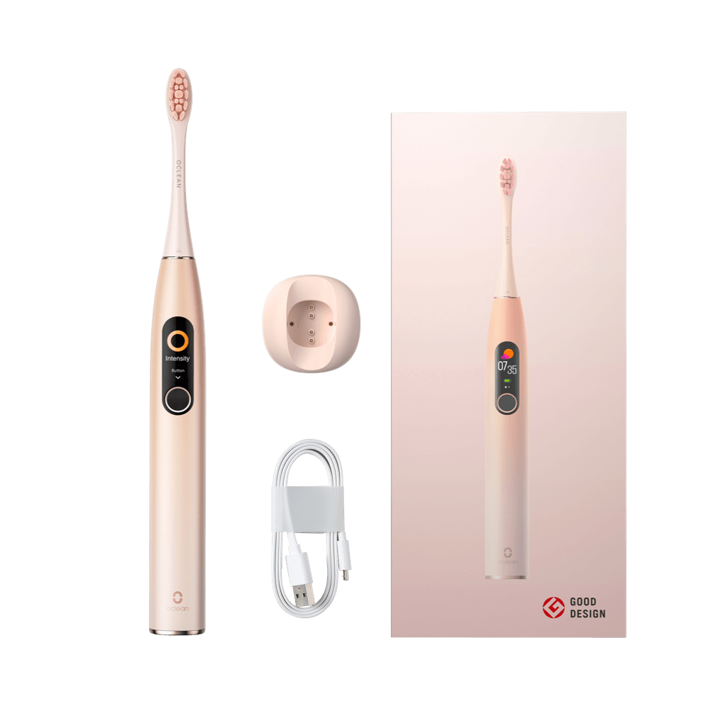 Oclean X Pro on tehisintellektiga varustatud Sonic elektriline hambahari, millel on nutikas ja lihtsalt kasutatav värviline puuteekraan, mis annab tagasisidet vahelejäänud piirkondade kohta ning mida saab ühendada Oclean Care äpiga personaliseeritud suuhoolduslahenduste jaoks. 1 käepide (3 režiimi) 1 otsik Laadija (kaabliga) Seinahoidik Aku kuni 30 päeva